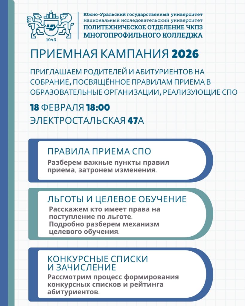 Приглашаем вас на собрание, посвященное правилам приема в СПО в 2026 году.