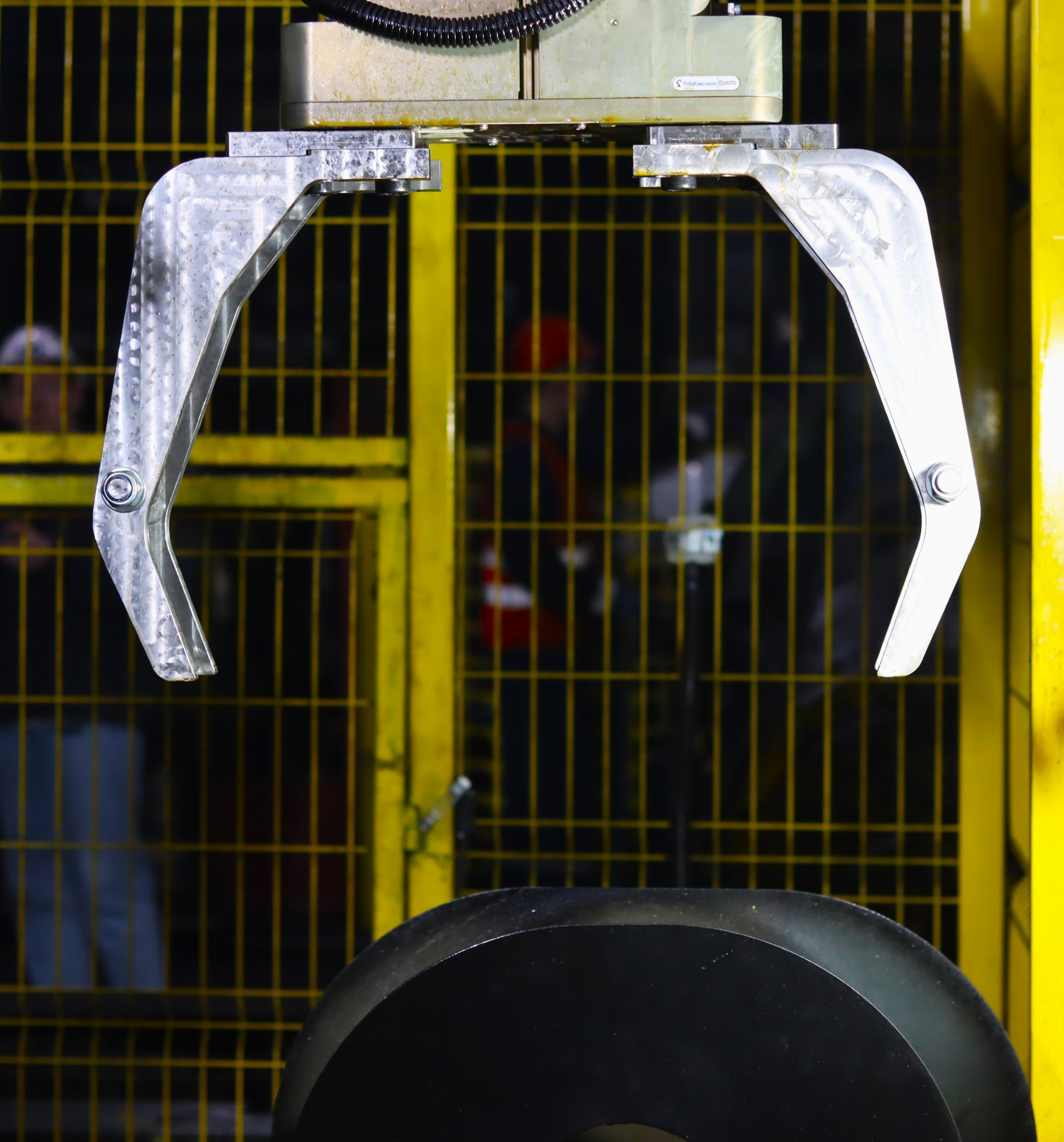 Шестиосевой робот-манипулятор задействован в операции по установке заготовки обода (обечайки) в штамп пресса для проведения технологической операции «осадка», в результате которой заготовка приобретает необходимую геометрию.